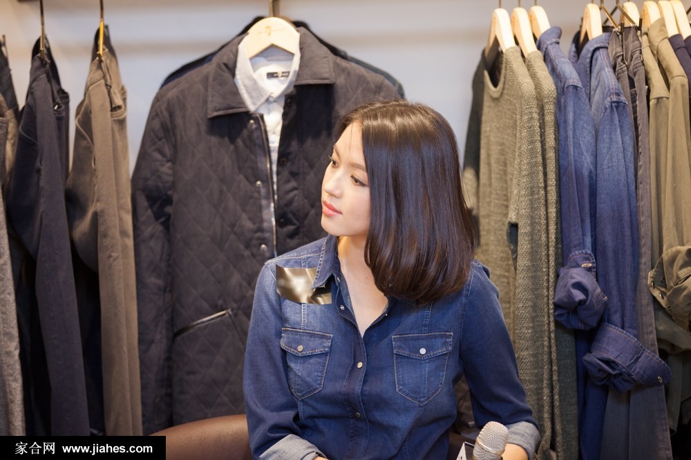 张梓琳低头整理牛仔外套袖口,专注神情与服装的工艺细节相映成趣